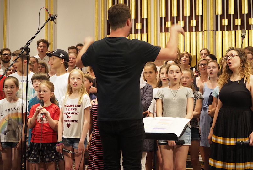 Mit Konzentration, Engagement und Authentizität begeisterten die ca. 200 kleinen und großen, jungen und älteren Sängerinnen und Sänger die Zuhörerschaft, die sich für dieses Erlebnis mit standing ovations bedankte.
