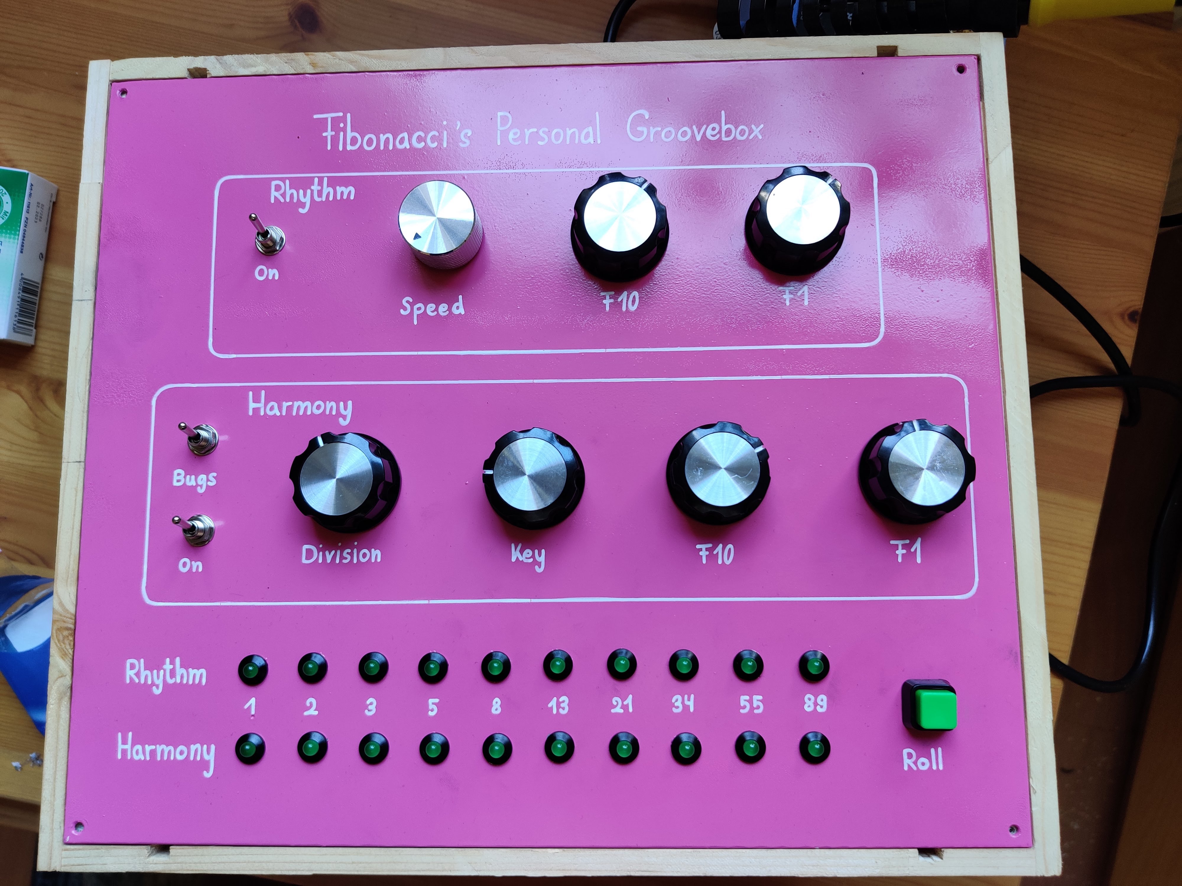 The Fibonacci series can be used to derive number matrices that create rhythmic and harmonic textures using Fibonacci's Personal Groovebox. The result is a MIDI controller that generates sound using binary coded Fibonacci numbers as parameters.