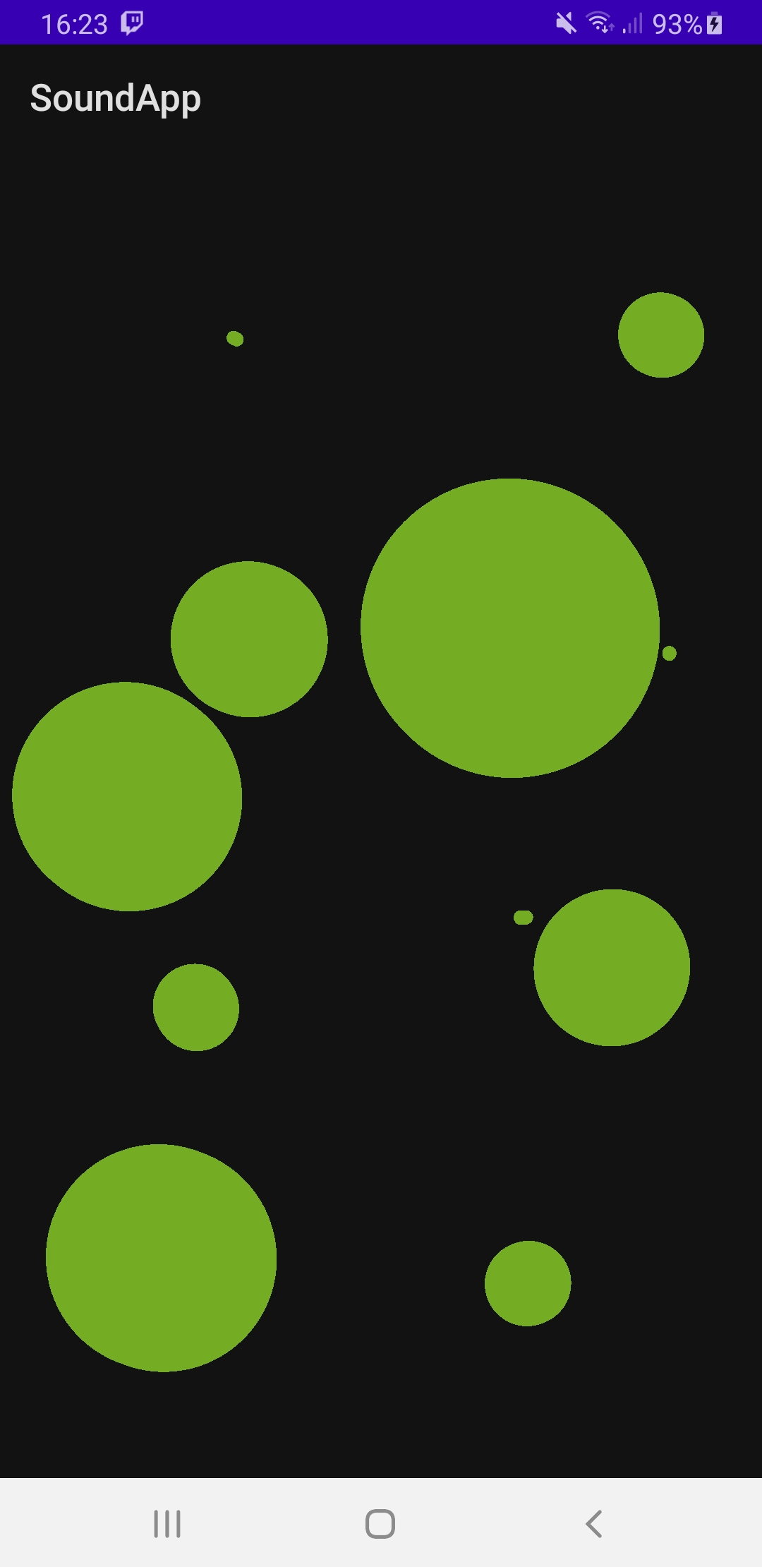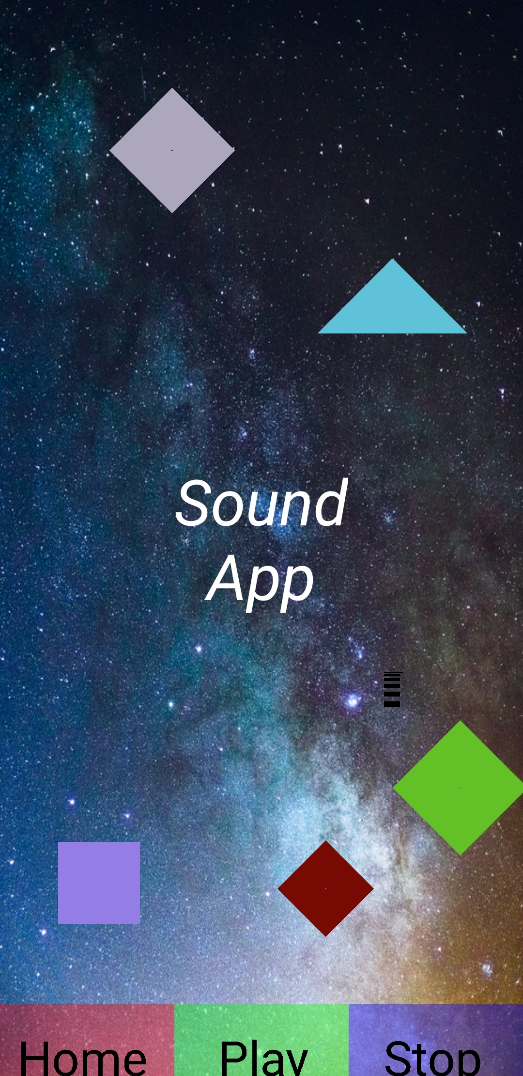 The SoundApp randomly generates different sounds and visualizes them using geometric shapes. Each shape is assigned its own sound. It is also possible to draw your own patterns to be set to music.